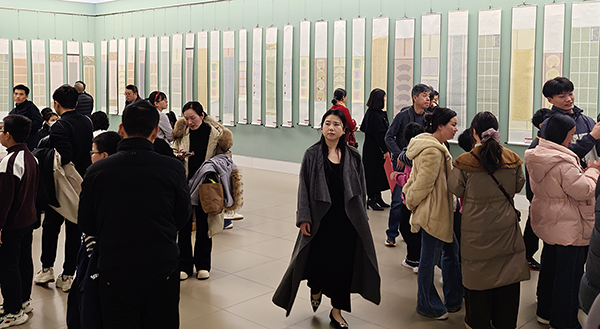 展览现场墨香氤氲、雅致有序,参展作品整齐陈列,吸引了各位嘉宾、师生家长及书法爱好者驻足观赏、细细品读。大家不时交流探讨笔法技巧、作品内涵,在一撇一捺间感受汉字的独特魅力,在笔墨流转中体悟传统文化的深厚底蕴,现场既有艺术交流的热烈氛围,更有文化传承的浓厚气息。